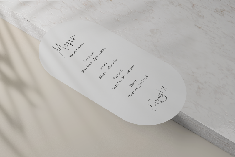 Bij een diner hoort natuurlijk ook een bijpassend menukaartje.